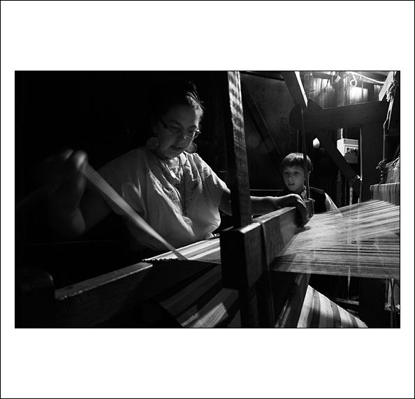 Barca do Lago, Agosto de 2010: uma tecedeira faz uma demonstração da sua "arte" perante o olhar atento de uma criança.